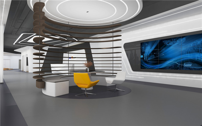 4)比較不常見的吊頂設(shè)計方式叫光棚式天花。光棚式天花是天花在某部分或全部用木或金屬作圖案框架,在架上放置透光片,在棚架上排布日光燈,燈光通過燈片的散射形成整個棚通亮,如同天窗透光的天花造型,通過透光的效果,產(chǎn)生較高的心理空間,給人以高于實際尺度的空間感,但同時造價也較高,不夠節(jié)能,所以這類設(shè)計方式在實際辦公樓裝修運(yùn)用中并不常見。