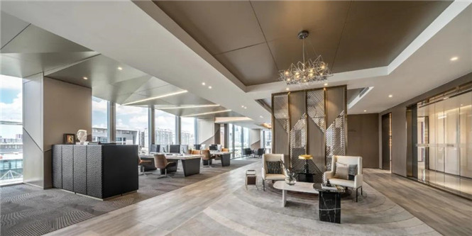 1、時(shí)尚開(kāi)放式辦公室設(shè)計(jì):前臺(tái)是一塊非常漂亮的天然石材,紋理豐富,是一件藝術(shù)品,為整個(gè)空間定下基調(diào)。運(yùn)用暖系色調(diào)融合啡色作為點(diǎn)綴,質(zhì)感豐富,對(duì)比分明,體現(xiàn)了大都會(huì)的時(shí)代感。大氣及細(xì)致并存,將建筑與藝術(shù)結(jié)合,展現(xiàn)剛?cè)岵⒅?,美觀與實(shí)用兼?zhèn)涞霓k公空間。開(kāi)放式辦公空間設(shè)計(jì)具有優(yōu)良的自然采光,高效實(shí)用,豐富多變的純凈度,摒棄不必要的復(fù)雜思想,更容易專(zhuān)注于工作。同時(shí),木材、皮革和地毯的溫暖觸感帶來(lái)柔軟感,與固體和干燥結(jié)構(gòu)的強(qiáng)度相撞。隨著光影的變化,演繹出靈活的層次感,為空間營(yíng)造優(yōu)雅的平衡感。