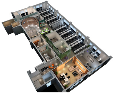 對(duì)于一個(gè)辦公空間來(lái)說(shuō),"安全"是根本,安全不僅包括避免結(jié)構(gòu)破壞、保證用料環(huán)保、適合員工人身安全,從空間大小、氣氛元素運(yùn)用到家具及軟裝飾擺放,如設(shè)置玻璃隔斷保護(hù)人員進(jìn)入公共空間的私密性,合理的設(shè)置監(jiān)控、門(mén)禁、電源保護(hù)裝置等是從安全規(guī)劃的考慮,這些充分考慮員工的心理感受。